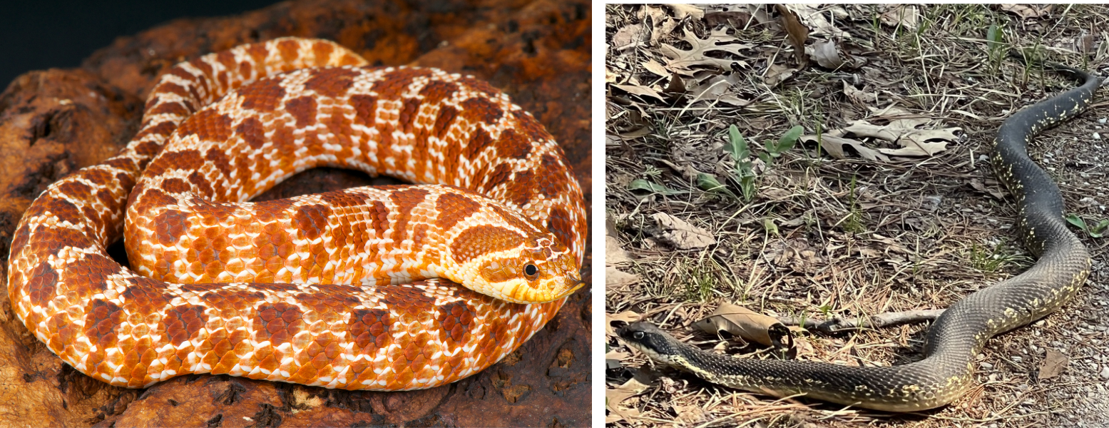Photo Credits (L-R): Stock Photo retrieved from Canva, Matthew Palarchio (melanistic Hognose Snake)