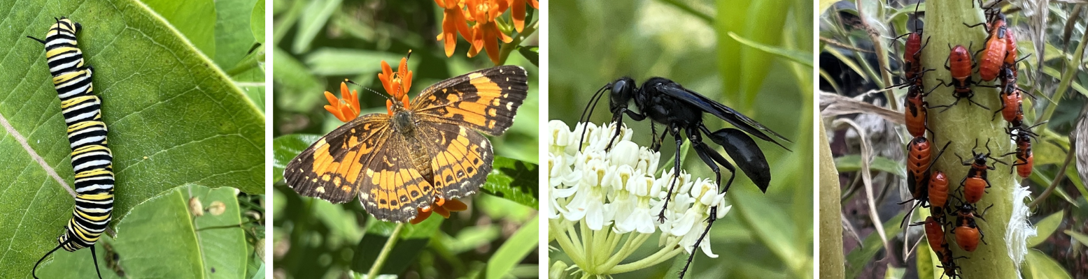 - Plant native plants – the single most impactful action! Whether you are an urban homeowner, or rural landowner – every effort helps. Native insects have evolved alongside native plants and rely on them for food (nectar, pollen, leaves), shelter, and egg-laying sites. Choose a variety of species that bloom throughout the growing season, this will maximize your positive impacts. Consider plants adapted to your specific soil and moisture conditions.